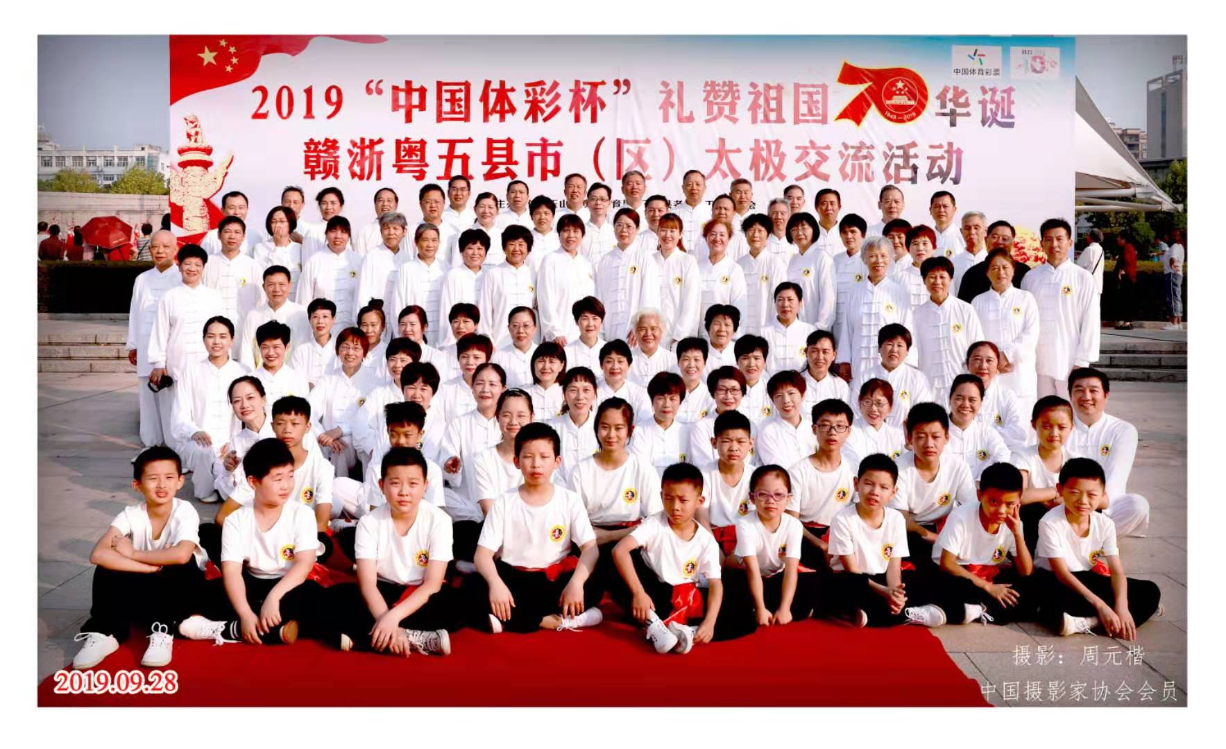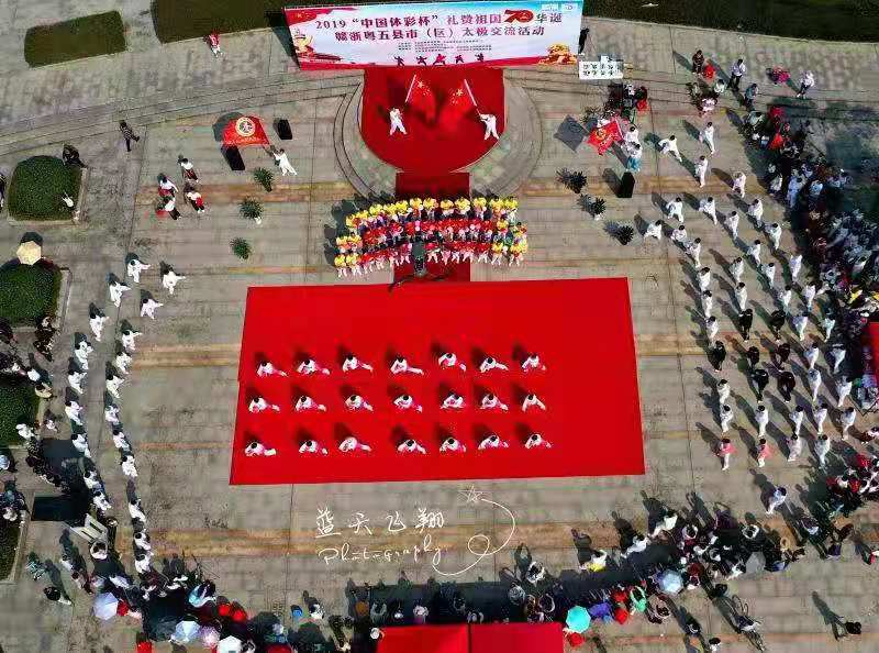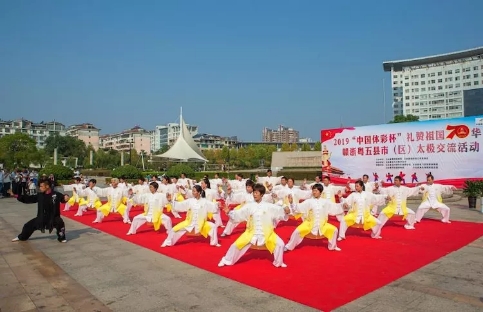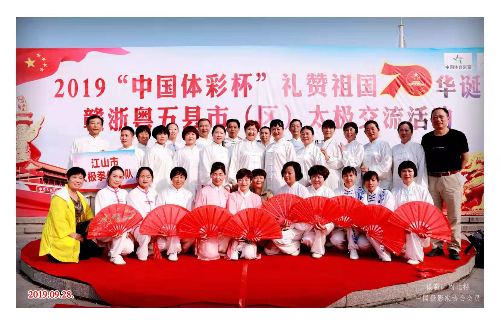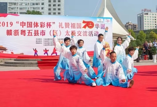 庆祝祖国七十华诞,推进健康中国建设,2019“中国体彩杯”礼赞祖国七十华诞赣浙粤五县市(区)太极交流活动,于9月28日上午在玉山县三清广场隆重举行, 活动由玉山县教育体育局、县老科技工作者协会联合主办,西安陈发科太极拳研究会江西分会艺天太极功夫会具体承办。