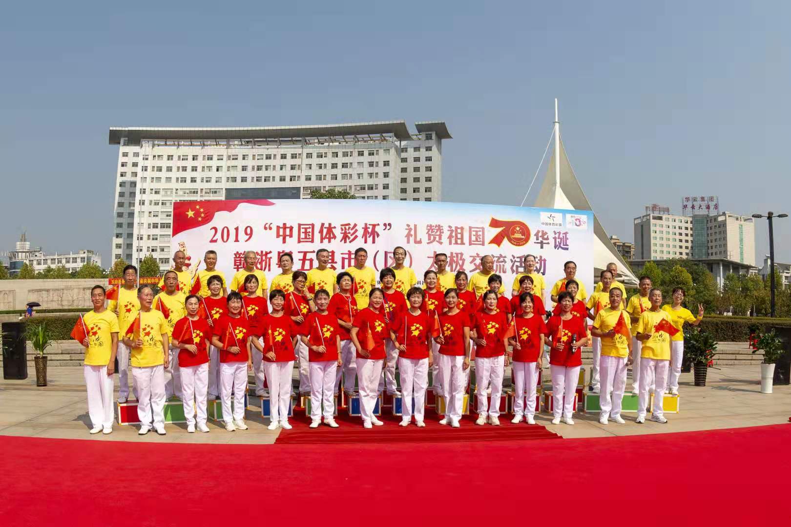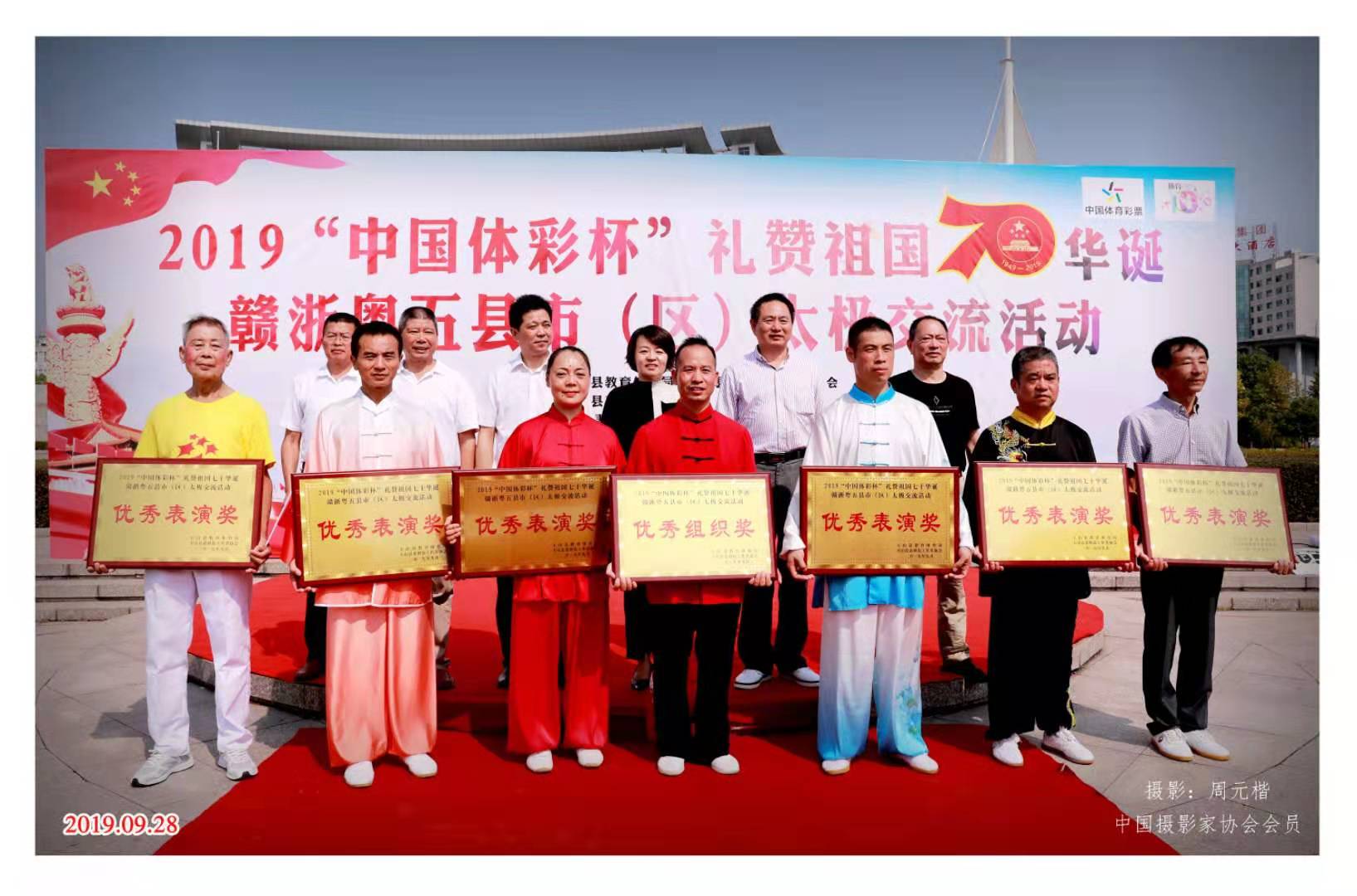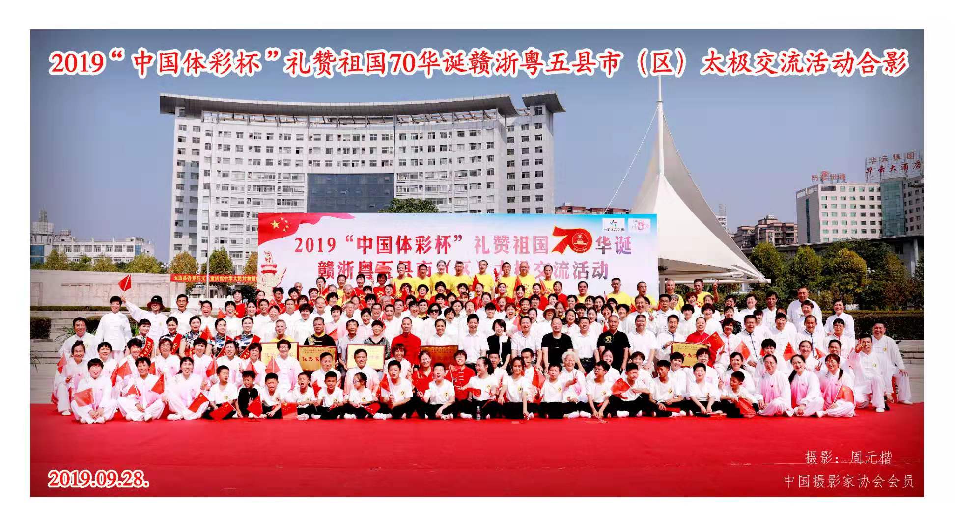 庆祝祖国七十华诞,推进健康中国建设,2019“中国体彩杯”礼赞祖国七十华诞赣浙粤五县市(区)太极交流活动,于9月28日上午在玉山县三清广场隆重举行, 活动由玉山县教育体育局、县老科技工作者协会联合主办,西安陈发科太极拳研究会江西分会艺天太极功夫会具体承办。