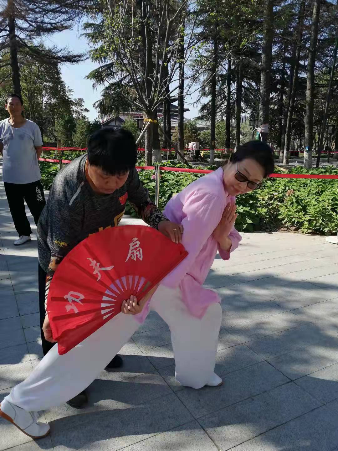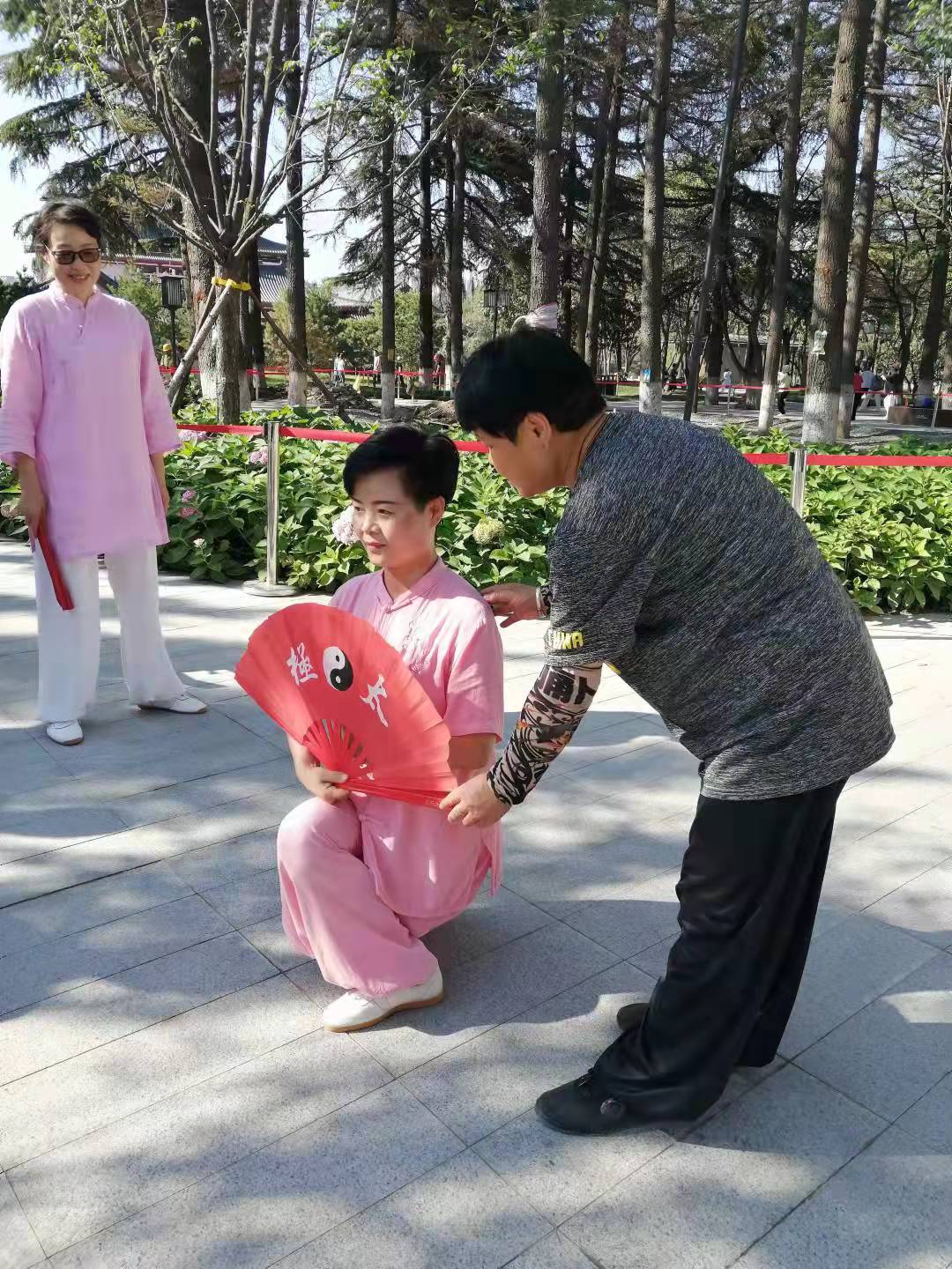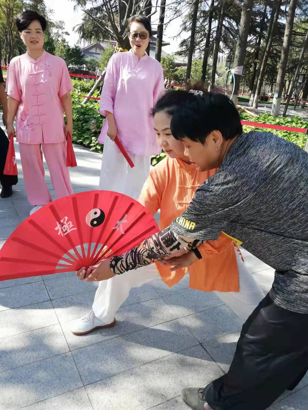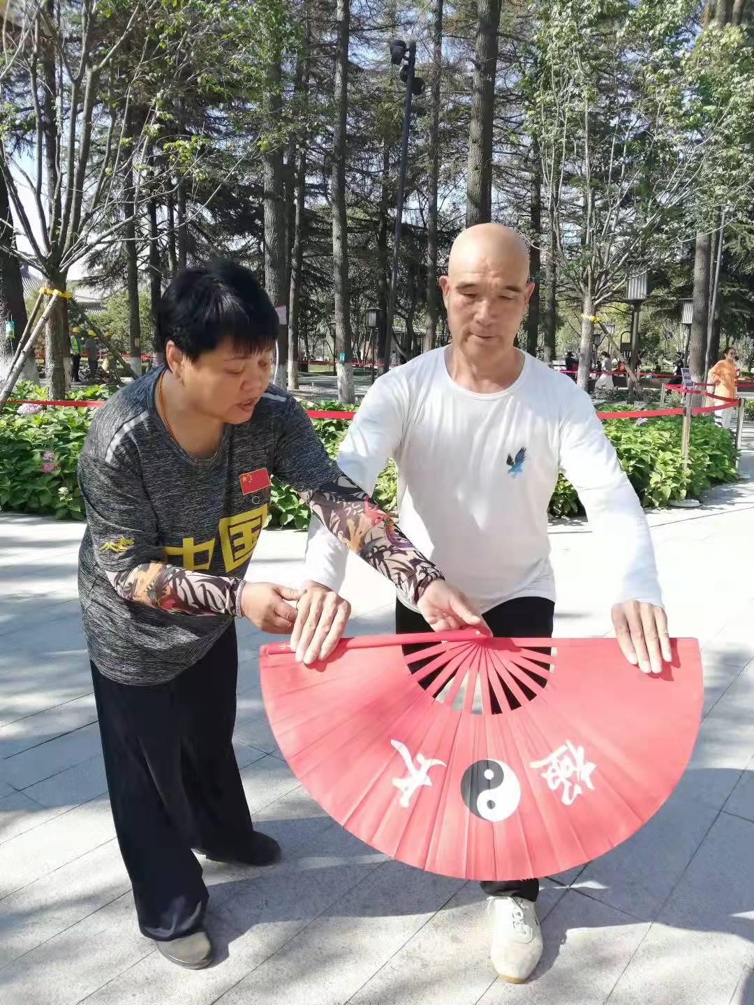 2021年金秋九月,桂花飘香,在风景优美的西安兴庆公园,西安陈发科太极拳研究会为期9天的陈式太极48式太极扇培训圆满结束。本次培训会长刘宝欢老师不辞劳苦亲自为学员进行培训,示范,针对大家的问题反复讲解,直到大家学会弄懂为止。学员们通过学习基本掌握了48式陈式太极扇动作要领。提高了学员的锻炼兴趣,更加丰富了自己的锻炼内容,又学到了新知识,对提高自己的拳技有了更大的帮助。为西安成功举办十四届全运会加油助力,贡献力量。