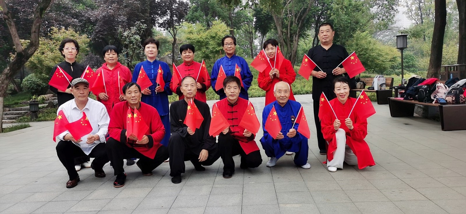 金秋十月,花团锦簇,举国上下,普天同庆。我们迎来了伟大祖国73岁华诞。具有百年历史的兴庆公园里,装扮一新,丹桂飘香五星红旗迎风飘扬,到处是歌的海洋,花的世界,我们西安陈发科太极拳研究会的拳友们也沉侵在节日的欢乐之中,十月一日我们研究会相聚在沉香亭辅导站,在会长刘宝欢老师带领下,拳友们以熟练的拳法、出神入化的剑术剑、刚劲有力的刀法、眼花缭乱棍法等这种方式庆祝祖国生日,也展现出我们武术人热爱祖国的拳拳之心。随后拳友们拍照留念,衷心的祝愿祖国繁荣昌盛,国泰民安。