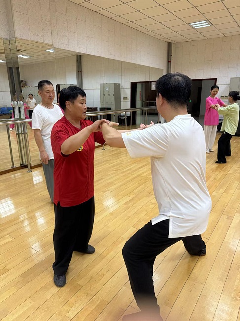 2024年6月14日烈日当头,酷热难耐,在这样的环境下,西安市市级非遗项目传承人,陈式太极拳第十二大传人,西安陈发科太极拳研究会会长刘宝欢一行开启了非遗项目陈式太极拳二次进企业的培训活动。旁晚时分,我们来到了航空工业一飞院,一飞院太极拳协会的太极拳爱好者准时来到了培训场地,大家克服天气炎热的不利因素,情绪高涨投入到培训当中,刘老师根据大家演练动作中的问题逐一进行了纠正和指导,又多次反复演练套路、对有难度动作刘老师耐心辅导,直到大家学会为止。虽然大家汗水湿透了衣服,气喘吁吁,但还在坚持不懈。通过刘老师的辛勤耐心指导,学员们的勤学努力,功夫不负有心人,达到了预期目标,收获满满,每个人的脸上露出了开心的笑容,到此培训工作也圆满结束。