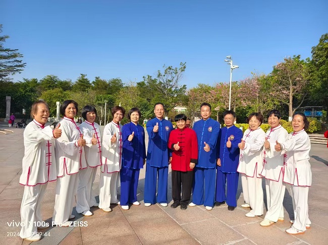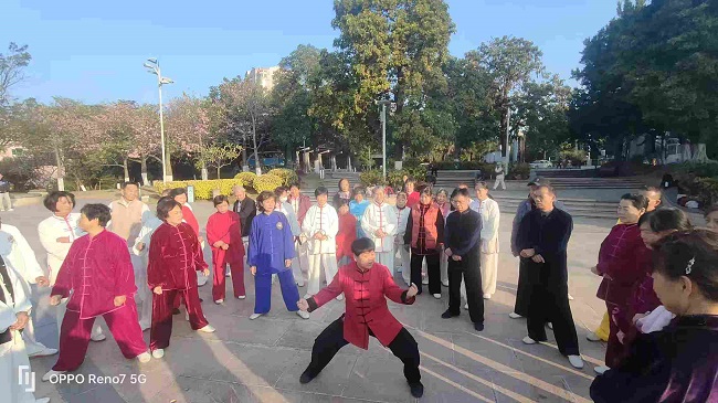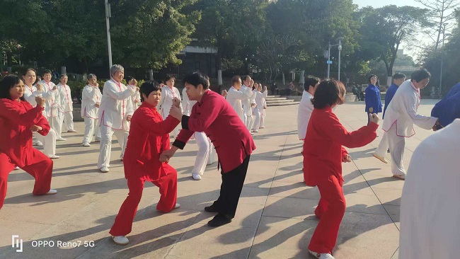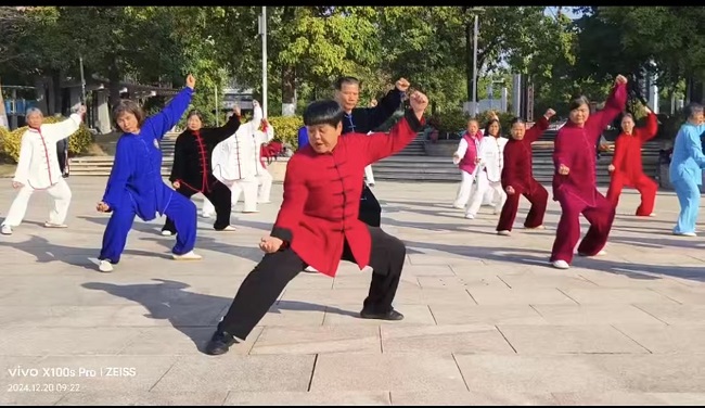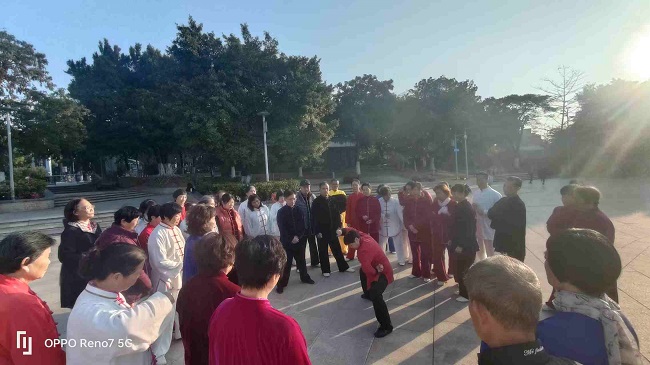 2024年。12月17日西安陈发科太极拳研究会会长刘宝欢应广州分会新雅辅导站站长江桂洪邀请,为辅导站学员进行陈式太极拳、太极剑、太极扇的指导提高。受到了大家的热烈欢迎。这次主要培训的内容是二路炮锤。动作虽然难度很大,学员们个个认真学习。通过这次培训学员们对太极拳的养生之道和技击内涵有了更深的了解。也更加丰富了他们的业余文化生活生活。