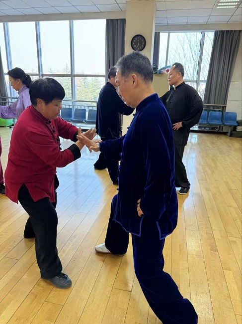 随后为学员培训了太极拳推手基本功。刘老师认真指导,手把手的教每个动作的技巧,方法,耐心反复的讲解要领和注意细节,学员们认真学习和练习,通过两个多小时的努力,基本上掌握了学习内容,达到了预期效果,培训结束,拳友们意犹未尽,相互交流学习心得,通过本次培训对拳理拳法又有了进一步认识,对太极推手也产生了浓厚的兴趣,大家纷纷表示一定要练好拳,学好功,强身健体,为幸福生活增添乐趣,不知不觉已是华灯初上,本次培训活动圆满结束。