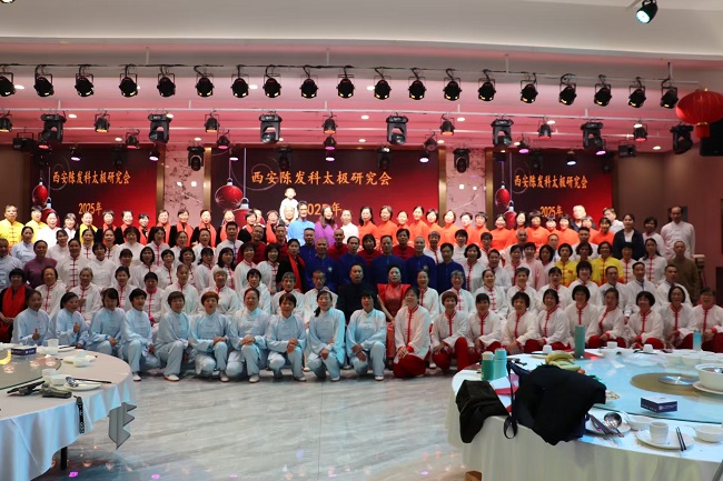热烈祝贺 : 《西安陈发科太极拳研究会》广州花都新雅辅导站2025年第九届年会圆满结束!这次活动参加会员达160多人,站长江桂洪作了2025年新雅辅导站的年度总结和2026年的工作计划,学员们把他们的所学进行了表演展示。表演内容有,陈发科太极拳老架非遗项目太极拳、器械有太极剑、太极扇、国家竞赛套路有、八段锦,八法五步、还有乐器、唱歌和旗袍秀等文娱节目,新学员也展示了陈式太极拳基本功表演。这次年会内容精彩并赋有内函,学员们的辛勤付出在此得到检验,活动在欢乐祥和的气氛中圆满结束。